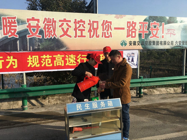 各營運單位團組織成立“暖冬行動”志愿服務小分隊,組織志愿者們在收費道口進行車輛疏導、法規宣傳、新春送福、便民服務等志愿服務活動,同時充分利用高速公路沿線情報板、懸掛橫幅、散發宣傳單等方式,廣泛營造“暖冬行動”的濃厚氛圍。金寨公司、池州中心、傳媒公司以“志愿行、春運路”為主題,結合實際開展特色活動;六安公司六安北站團支部積極動員各收費班組制作了二維碼支付卡,為很多沒充?,F金繳納通行費的司機朋友解決了燃眉之急;省交運集團通過提供上門售票、提前預訂團體票和往返票、增設專門窗口等創新售票方式積極服務乘客出行;高速石化開展“春運有我”志愿服務活動,號召公司團員青年深入一線協助維護加油秩序、為顧客提供便民服務;驛達公司各服務區開展了“送服務、送溫暖”主題活動。