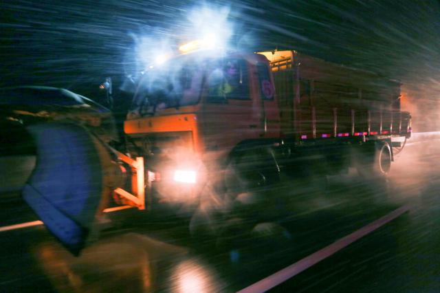 據統計,12月13日8時至12月14日8時,集團累計出動除雪機械約222臺班,人工1054人次,撒布融雪劑約600多噸,為路網有序通行提供了保障。