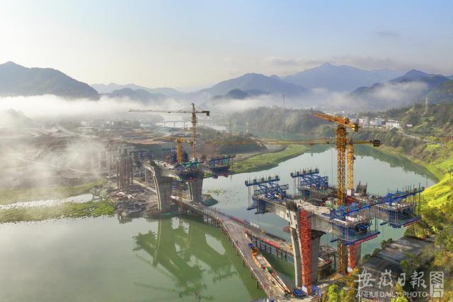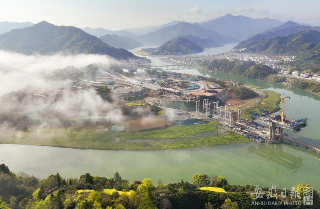 連日來,安徽省黃山市歙縣氣溫不斷回升,黃千高速歙縣昌源河大橋及深渡綜合服務功能區建設工地上,建設者加快推進項目建設,為早日實現通車目標努力。