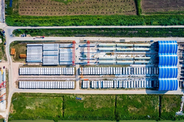 德上高速合樅段全線13公里道路采用樁板式道路結構,較橋梁造價節約30%以上,節省永久占地458畝,縮短施工周期30%以上,減少碳排放20%。全線15公里、45座橋梁采用輕型T梁,實現橋梁建造工業化。與傳統T梁橋相比,造價降低15~19.2%,降低碳排放23%~28%。蕪湖長江公路二橋2萬多榀節段梁及下部墩柱都采用了標準化設計、工廠化生產、裝配化施工。池祁高速全線鋼板組合梁12.4公里節約混凝土10萬余方,大大節約砂石資源。