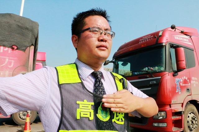宿州公司亳鹿站工作人員頭頂烈日查驗綠通車