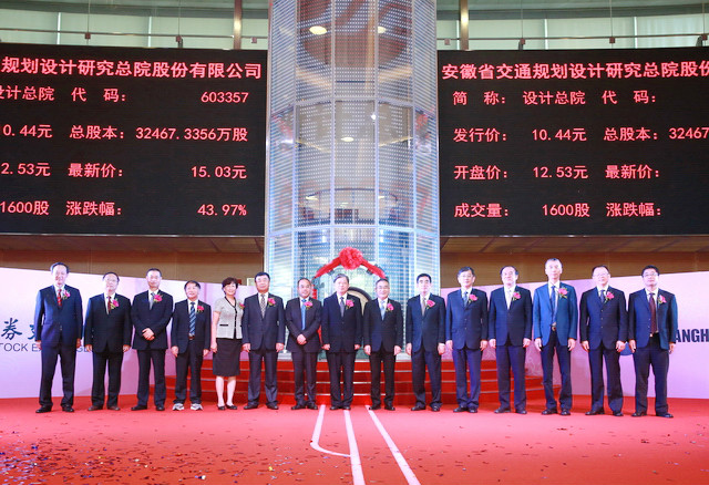 交規院登陸上海證券交易所主板,確定簡稱為“設計總院”,股票代碼為“603357”,發行股票數量為8120萬股,全部為公開發行新股,發行后總股本不超過324673356股。上市首日,設計總院開盤后頂格漲停,股票價格定格在15.03元,較發行價上漲43.97%。