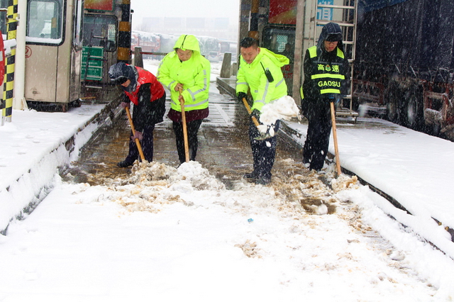 蕭縣處組織人員、機械設備,在連霍高速安徽段和濟祁高速碭山段重點路段開展鏟冰除雪作業,利用沿線LED顯示屏發布安全行車警示及路況信息,聯合交警、路政開展全路段安全巡查,發現路面、道口滯留車輛及人員立即采取交警車輛帶道分流等措施,各收費站加強便民服務,為滯留收費站司乘人員提供臨時休息場所,送去食品、開水、充電器等應急物品。