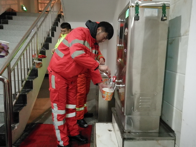 凌晨3點,各養護工區倉庫依舊燈火通明,養護工人們毫無倦意,將一袋袋融雪劑放在傳送帶上,源源不斷地為一輛輛撒布車充實“糧草”;與此同時,除雪人員對車輛進行檢查調試,為再次上路做足充分準備。連續作業、來不及吃飯的路產施救人員匆匆泡一碗方便面充饑,又再次踏上除雪的征途……