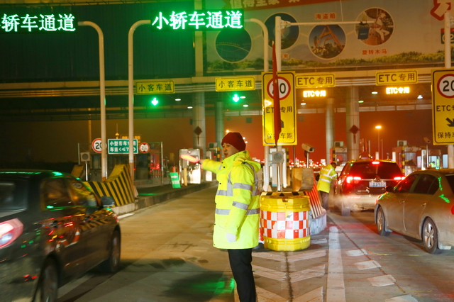 馬鞍山中心皖蘇博望站啟用階梯式串并聯收費模式,53臺收費終端同時開啟,150余名員工共同上陣,中心機關人員放棄休假,一支由中心機關、各收費站黨團志愿者組成的“保通突擊隊”在博望站集結,0時“免改收”模式切換后,在全體保通人員的共同努力下,道口收費工作井然有序。