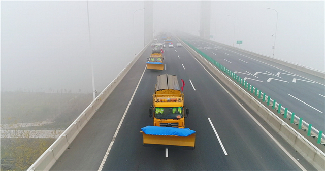 11月26日,馬鞍山長江大橋監控中心發出緊急通報:大橋路段突降大雪,積雪已達2厘米以上并伴有路面結冰,影響車輛正常通行。隨著一聲令下,大批搶險人員、大型專業搶險機械火速前往險情發生路段,集團公司2018年度特大橋除雪保通應急演練就此拉開序幕。