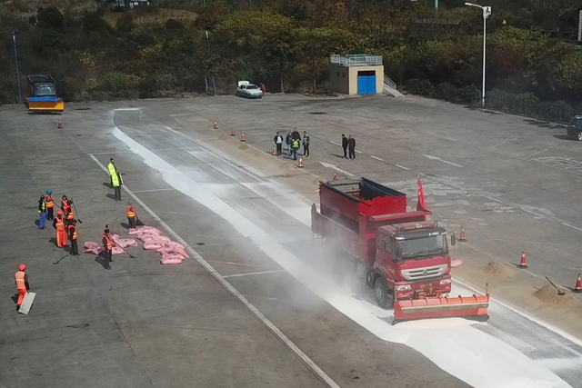 本次除雪演練以馬鞍山長江大橋突降大雪,影響車輛正常通行,需要立即進行鏟冰除雪作業為背景。分別模擬了梯隊鏟雪作業、環保型融雪液裝載與噴灑及“鏟、刷、撒”一體化作業共三項科目。演練采用全程跟蹤、實時轉播的方式展示,部署計劃周密,氛圍營造濃厚,路、警、企以及各協辦方配合順暢。按照集團公司《高速公路除雪作業指南》,演練中除雪作業規范有序,對跨江跨淮特大橋除雪有很強的針對性,除雪作業高效安全,防護措施到位。演練貼近實戰,充分檢驗了應急預案的科學性,進一步規范優化了作業規程,磨合凝練了應急隊伍,提高了實戰能力,對集團公司特大橋除雪保通工作有積極的指導和借鑒意義。