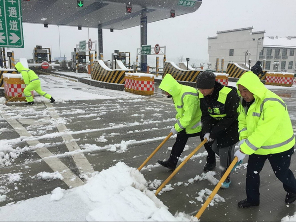 20日傍晚17時左右,集團公司所屬各營運單位以雪為令,及時啟動應急預案,根據路面雪情狀況,主動出擊,及時上傳下達除雪指令,快速調度除雪物資與人員;采取人工、機械相結合等有效舉措,重點對長大橋梁、大流量路段、匝道、陡坡等“各個擊破”,撒布融雪劑;各收費站立足道口發放提醒卡,溫馨提示過往司乘安全駕駛,并跟進做好道口暖心便民服務;路產人員加大道路巡查密度,并隨時做好事故救援準備。各除雪應急保暢隊伍不畏嚴寒,深夜堅守除雪崗位,高效完成大小除雪任務。