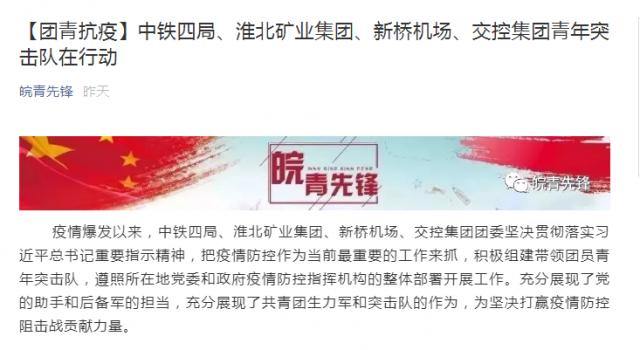 【皖青先鋒】【團青抗疫】中鐵四局、淮北礦業集團、新橋機場、交控集團青年突擊隊在行動